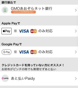 | Paidy(あと払い) | ○ | ○ | ○ |