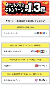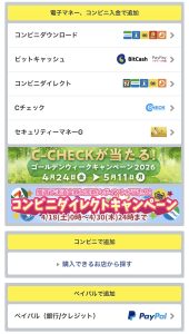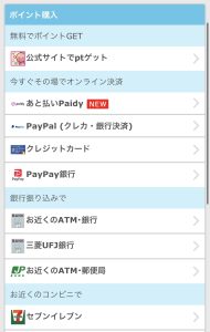 PayPayでの直接決済が確認できてます。一定額のポイント購入でポイントプラス、さらにPayPayでのポイント追加や週末にポイント増量キャンペーンが定期的に開催されるので、そのタイミングで購入するとさらにお得です。