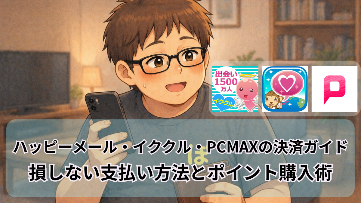 この記事では、ハッピーメール・イククル・PCMAXの決済に関する情報を徹底的に整理します。読み終わった後は、決済に関する不安が全部消えている状態を目指して書きました。