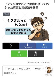 ちなみにアイキャッチ画像というのは、記事一覧やSNSでシェアされた時に表示されるこの部分の左側の画像のことです。記事のトップ画像もアイキャッチ画像に当たります。